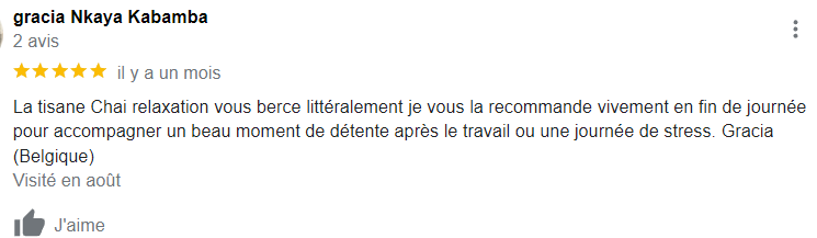 Gracia, co-fondatrice de Chai Amani avec son mari, est une infirmière de profession qui a eu l’opportunité d’exercer son métier dans divers milieux médicaux durant son parcours professionnel. C'est tout naturellement que sa passion pour le domaine de la santé s'est accrue au fil du temps, la poussant à s'intéresser à la naturopathie et plus particulièrement aux plantes médicinales. Sur base de cette passion naîtra le projet Chai Amani et Gracia décidera de passer une certification en naturopathie, qu'elle a obtenu à ce jour.